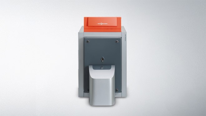 Yakıt tipine bağlı olarak, iki kademeli üflemeli Vitoflame 100 (sıvı yakıtlı 270 kW'ye, gaz yakıtlı 200 kW'ye kadar) fabrikada ayarlanır ve çalışır durumda kontrol edilir.